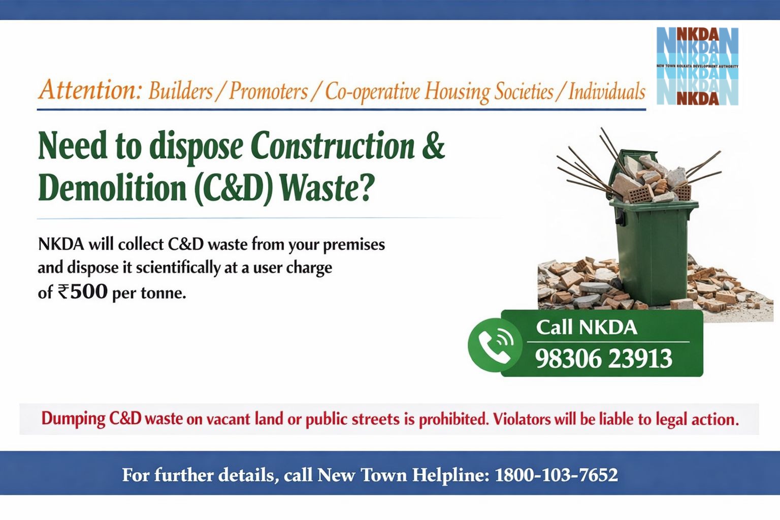 • Construction of NKDA market in between the car parking lot and D.C.P. office at Street No. 45 of Action Area-I, New Town, Kolkata to rehabilitate the street hawkers opening around DLF-I/ Coal India Bhavan and nearby places of New Town, Kollkata.